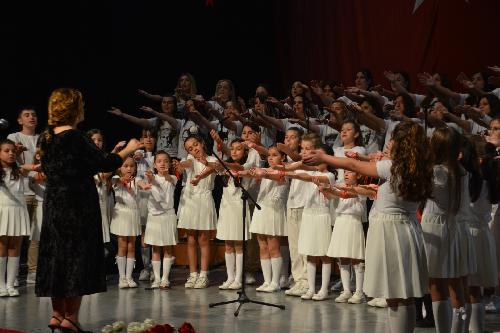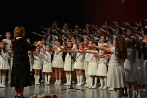 Bazıları cumhuriyet temalı olan çocuk şarkılarının yanı sıra Türk müziğinin sevilen eserlerinden oluşan 17 parça seslendiren Çocuk Korosu’nun konserin son bölümündeki şarkılarını, sahneye çağırılan anneleriyle birlikte söylemesi, güzel seslerin yanı sıra çok güzel görüntülerin de ortaya çıkmasını sağladı.