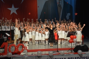 Şef Esra Torlakçı yönetimindeki, 40 kişilik Çaycuma Belediyesi Çocuk Korosu, Cumhuriyetin Kuruluşunun 100. Yılı Etkinlikleri kapsamında muhteşem bir konser verdi. Çaycuma Kültür ve Sanat Merkezi’ndeki konserde şarkılarıyla cumhuriyet sevgisini anlatan çocuklar, salonu dolduran Çaycumalılar tarafından ayakta alkışladı.